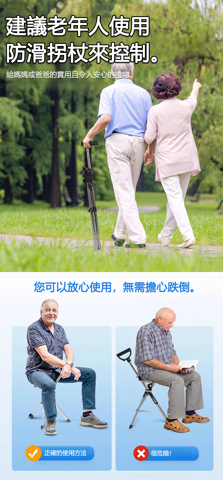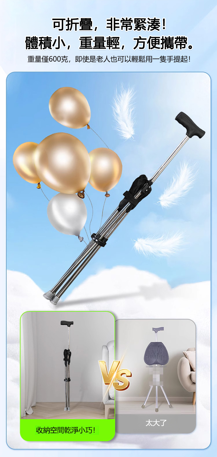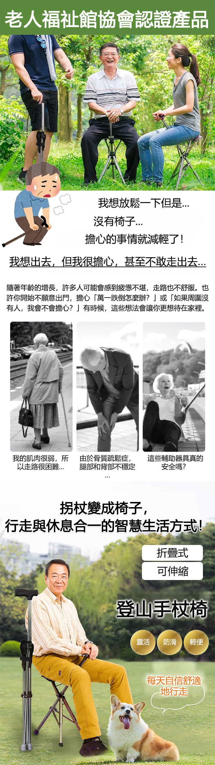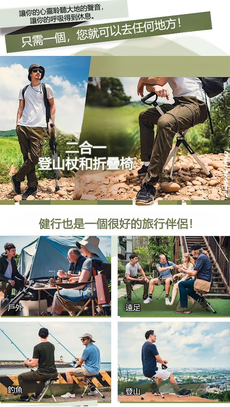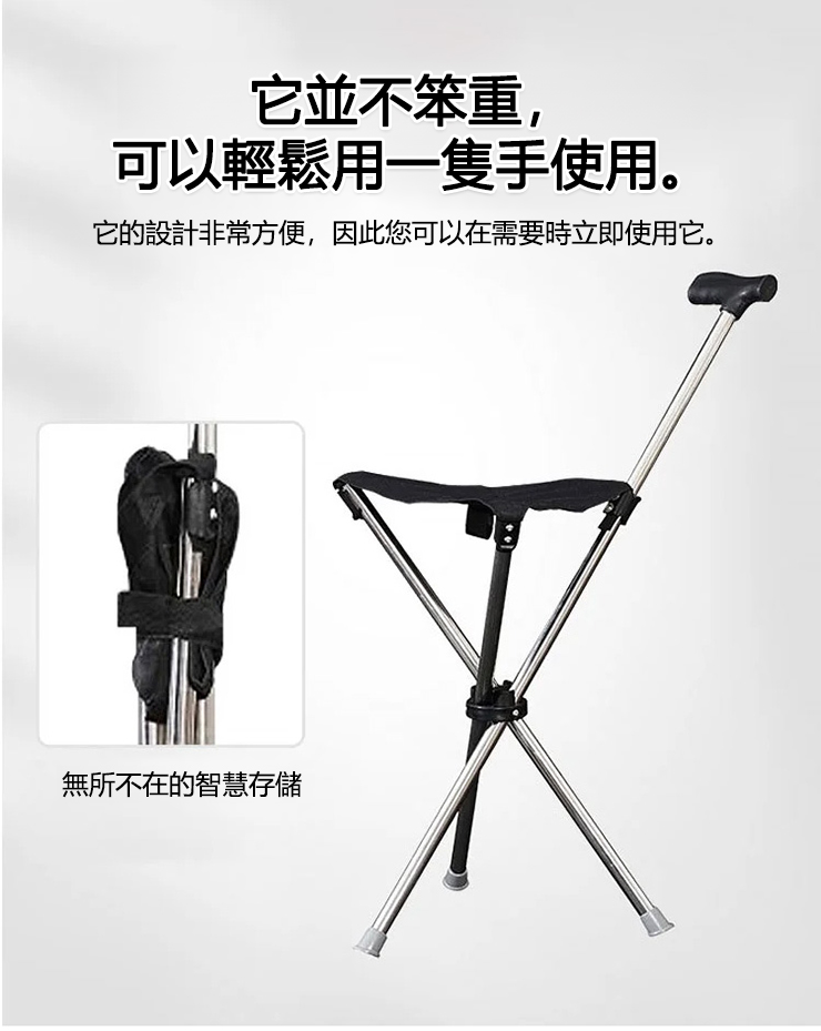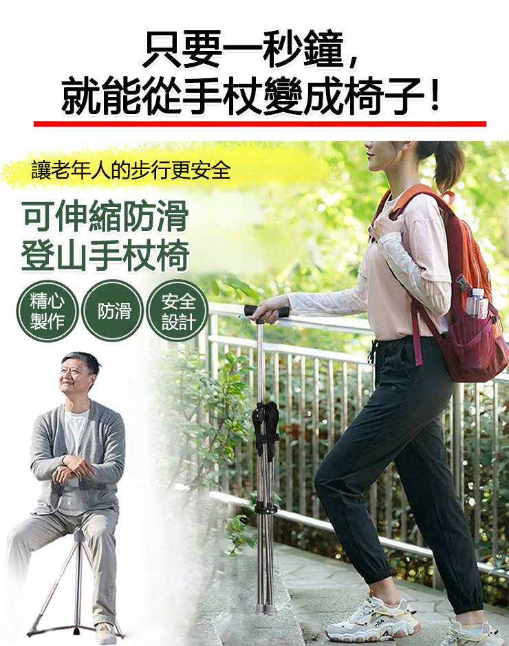 【3色可選】可伸縮防滑登山手杖椅
